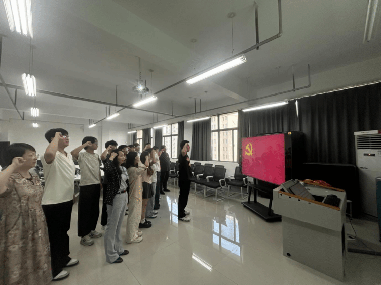 最后,毕业生党员代表施展带领全体党员重温入党誓词,坚定初心使命,再次表达了毕业生党员对党的无限忠诚和为共产主义事业奋斗终身的坚定信念。