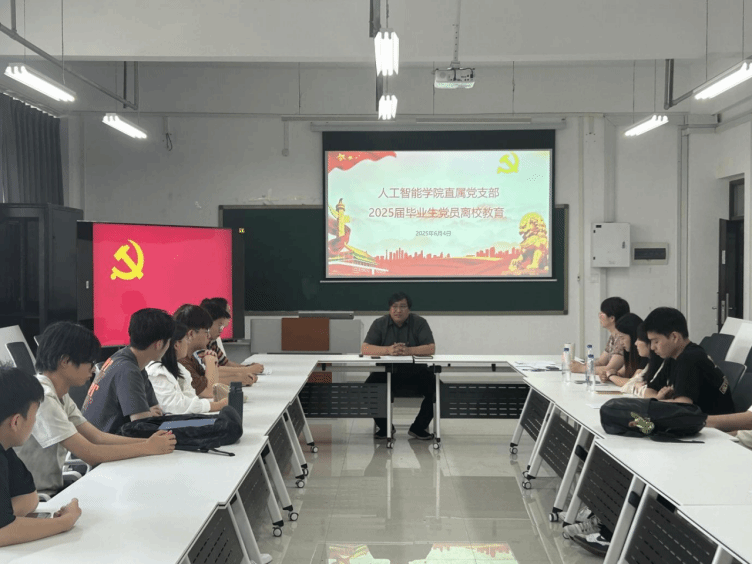 在龙湖校区三号组团楼 A907 教室召开 2025届毕业生党员离校教育大会,直属党支部副书记张志鹏、毕业生辅导员及全体毕业生党员参会。