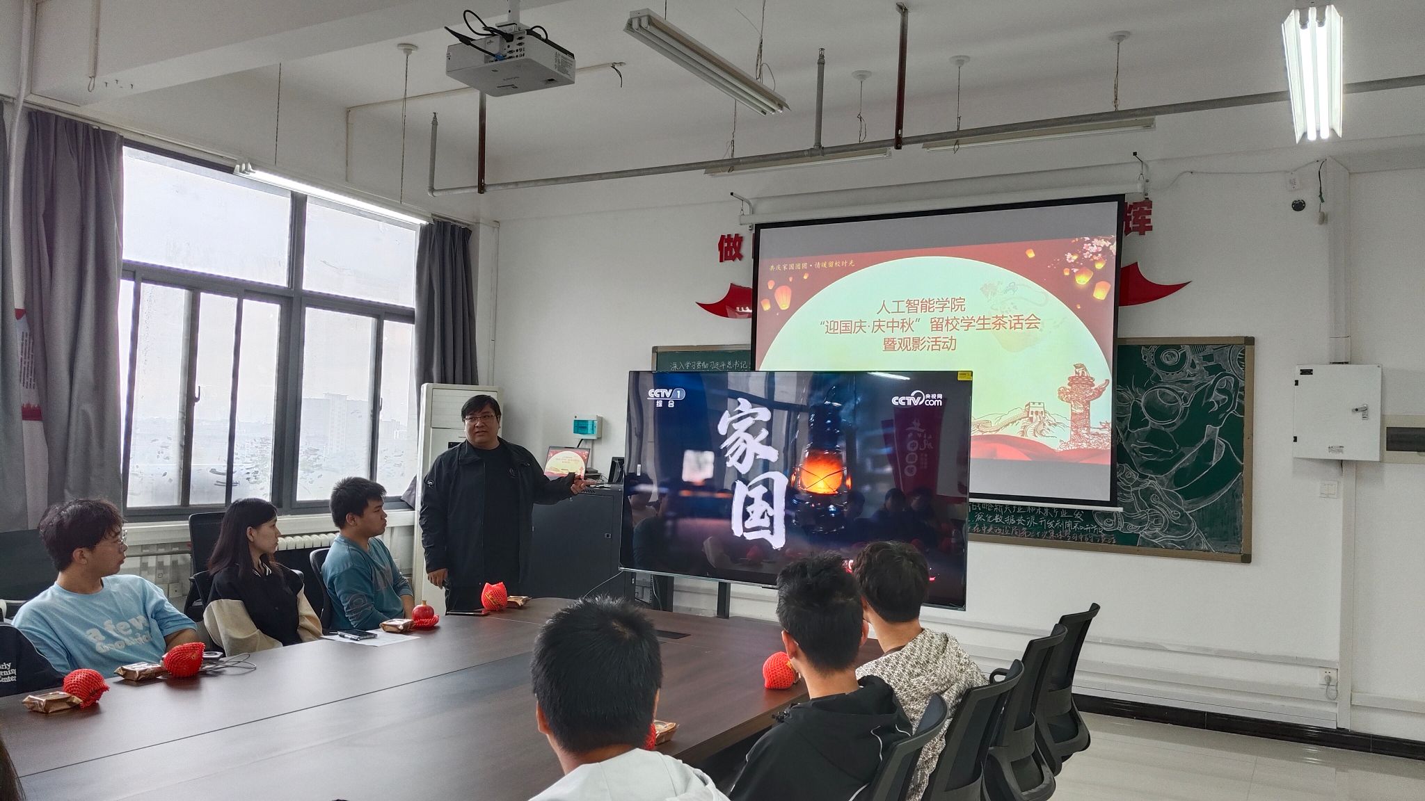在三号组团楼A915会议室隆重举办“迎国庆・庆中秋”留校学生茶话会暨观影活动,学院直属党支部副书记张志鹏与假期留校学生代表齐聚一堂,共度佳节。